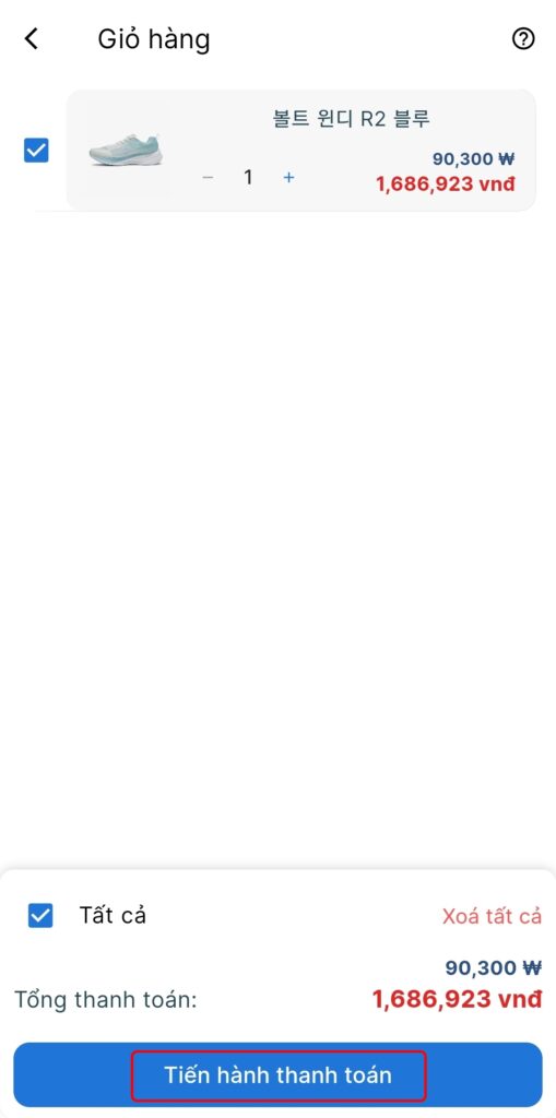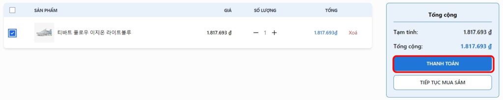 Bước 4: Đến giỏ hàng và tiến hành thanh toán phí sản phẩm