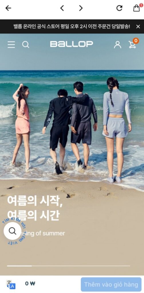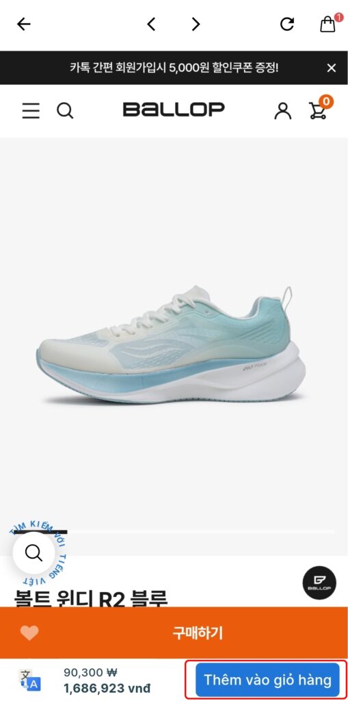 Bước 2: Chọn “Web Đặt giày thể BALLOP thao Hàng” và truy cập link https://ballop.co.kr/