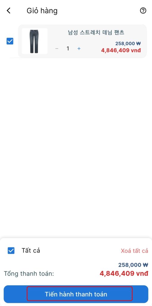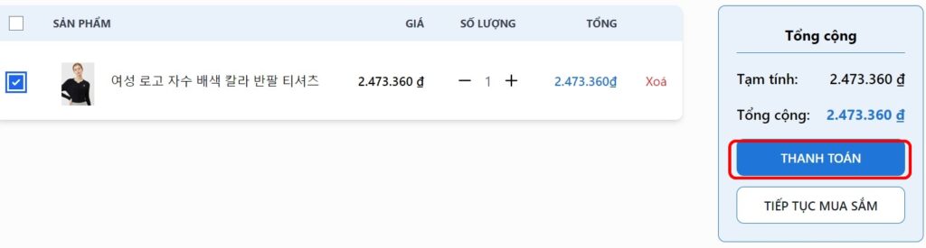 Bước 4: Đến giỏ hàng và tiến hành thanh toán phí sản phẩm