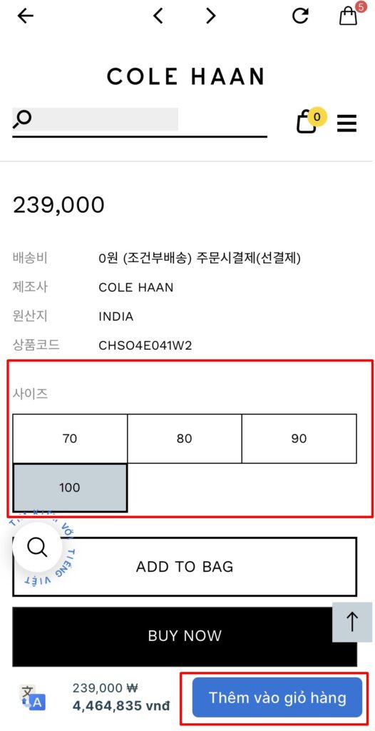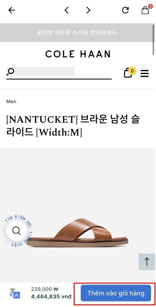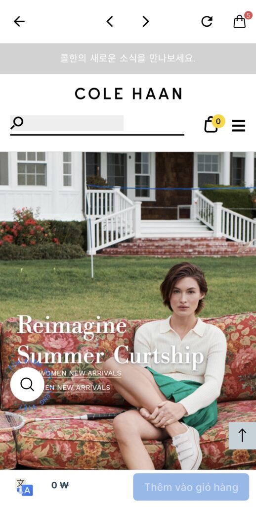 Bước 3: Tìm kiếm và truy cập trang ColeHaan và tiến hành mua sắm