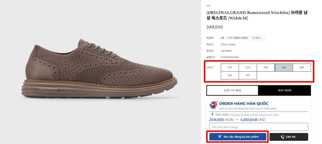 Bước 2: Chọn “Web Đặt Hàng” và truy cập link https://colehaan.co.kr/