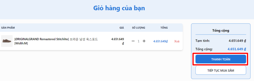 Bước 4: Đến giỏ hàng và tiến hành thanh toán phí sản phẩm