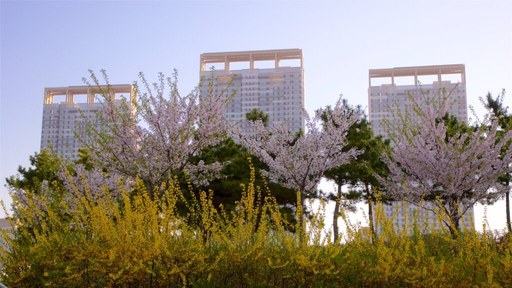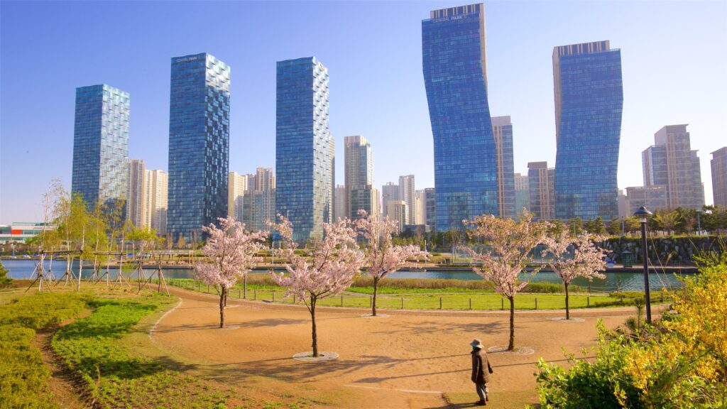 Songdo, một hòn đảo nhân tạo được tạo ra với xung quanh là biển, đã trở thành hình ảnh biểu tượng của sự phồn hoa. Mỗi tòa nhà chọc trời hoành tráng là kết quả sau khi nhận được giấy phép xây dựng và trải qua "trung Trung tâm tam" quá trình thẩm định nghiêm ngặt về thiết kế và cảnh quan đô thị. Đó là lý do tại sao các tòa nhà trông giống như một tác phẩm nghệ thuật. Ấn tượng đầu tiên về Songdo thường là nó giống như một thành phố tương lai.