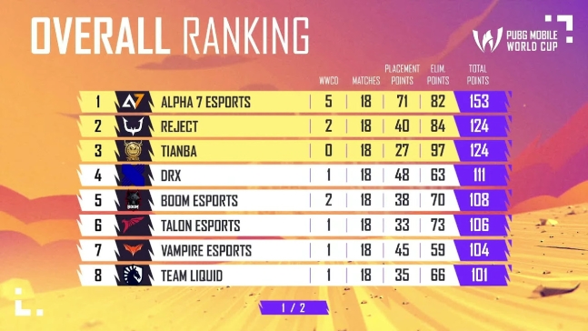 Trong trận đấu thứ 15, DRX đã chịu tổn thất nặng nề từ IW NRX ngay từ đầu và mất ba người chơi. Dù 'Qx' Lee Kyung-seok đã chiến đấu quyết liệt, nhưng họ không thể thoát khỏi sự bao vây của TJB Esports và bị loại. Trong trận đấu thứ 16, DRX đã bình tĩnh ghi thêm điểm hạ gục từ đầu trận nhưng bị loại trong quá trình tiến vào vùng an toàn cuối trận, không thể lọt vào top 4.