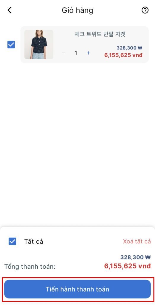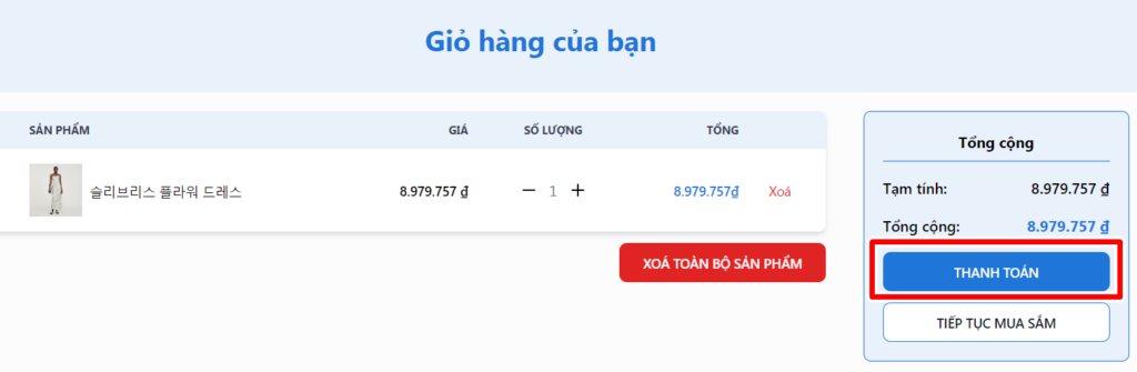 Bước 4: Đến giỏ hàng và tiến hành thanh toán phí sản phẩm