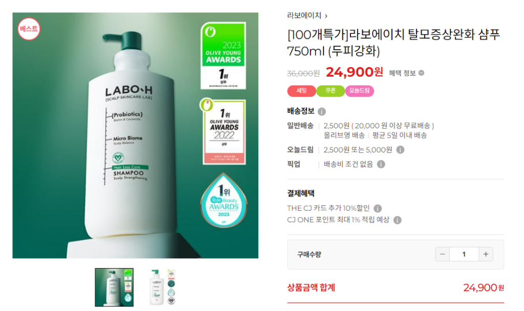 LABO-H Hair Loss Relief Shampoo – Sản Phẩm Chăm Sóc Tóc Bán Chạy Số 1 Olive Young.