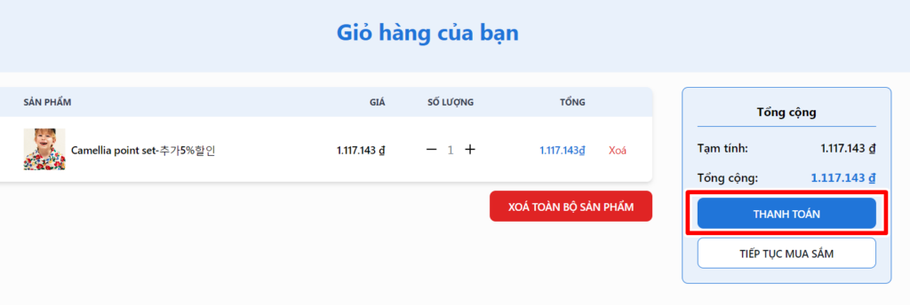 Bước 4: Đến giỏ hàng và tiến hành thanh toán phí sản phẩm