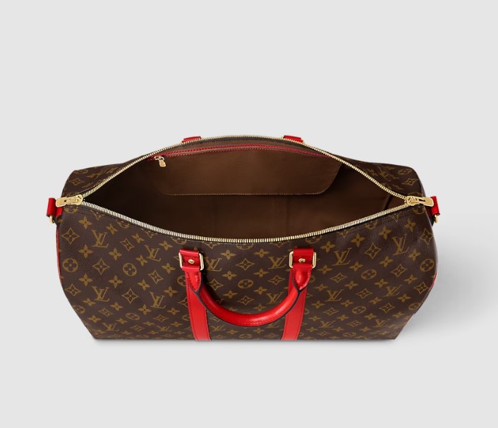 Mẫu túi Keepall Bandouliere 50 Monogram Coquelicot Red với sức chứa rộng rãi thoải mái hoàn toàn đáp ứng được tất cả nhu cầu của những người tìm kiếm mẫu thiết kế vừa có vẻ ngoài sang trọng vừa chứa được nhiều vật dụng cá nhân cho 1 chuyến "Red" du lịch dài. Với điểm nhấn là viền da bò bằng da màu đỏ rất nổi bật cộng thêm các chi tiết kim loại màu vàng ánh kim làm tăng thêm sự độc đáo đồng thời khẳng định đẳng cấp của thương hiệu LV nhưng vẫn rất tinh tế.