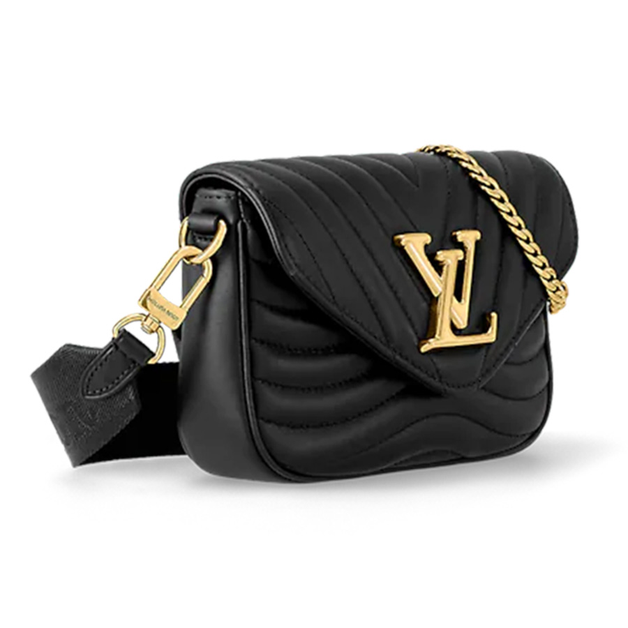 Mẫu thiết kế với những đường may chần bông trên bề mặt của chất liệu da bê mềm mại cao cấp tạo nên hiệu ứng nổi bật. Ngoài ra biểu tượng kim loại trên túi như là điểm nhấn đặc biệt tương phản với tone màu đen quyến rũ. LV New Wave Phần dây đeo kim loại thuận tiện eo vai hoặc xách tay càng làm cho tổng thể chiếc túi trở nên đẳng cấp hơn. Mẫu thiết kế này như 1 phụ kiện thời trang đa năng không thể thiếu trong bộ sưu tập của các cô nàng thời thượng
