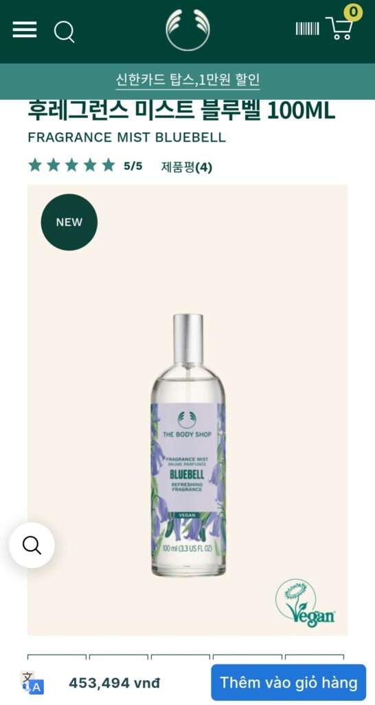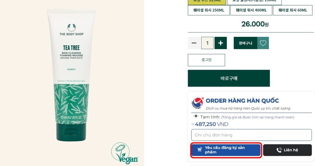 Bước 2: Chọn “Web Đặt Hàng” và truy cập link https://www.thebodyshop.co.kr/