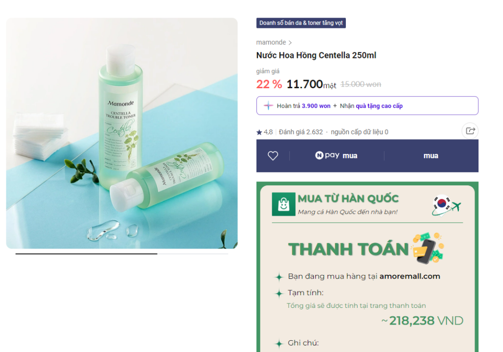 2. Nước hoa hồng Mamonde Centella Trouble Toner chiết xuất rau diếp cá giúp hạn chế Hồng Của mụn, làm dịu da và thúc đẩy quá trình hồi phục da với vùng da tổn thương.