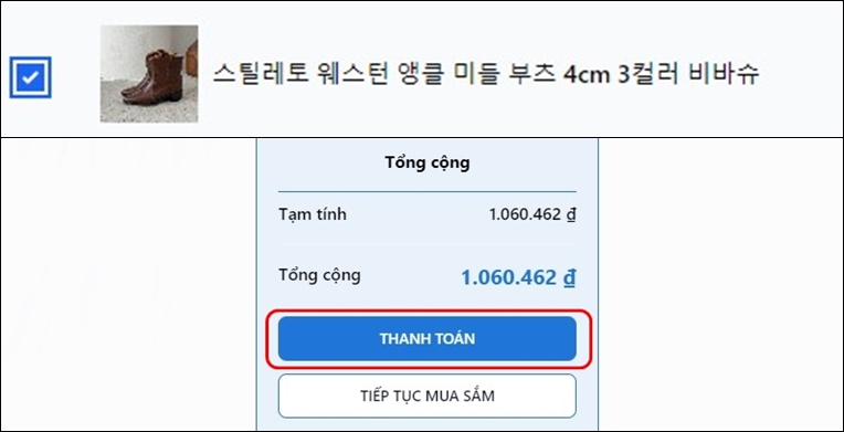 Bước 4: Đến giỏ hàng và tiến hành thanh toán phí sản phẩm