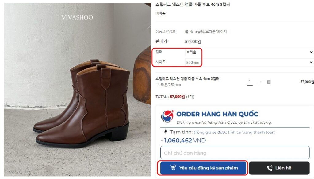 Bước 2: Chọn “Web Đặt Thời trang Hàng” và truy cập link https://vivashoo.co.kr/