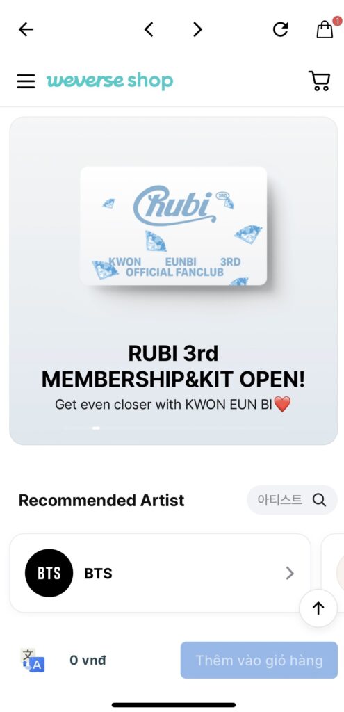 Bước 3: Tìm kiếm và truy cập trang Weverse Shop và tiến hành mua sắm