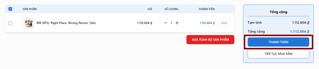 Bước 4: Đến giỏ hàng và tiến hành thanh toán phí sản phẩm